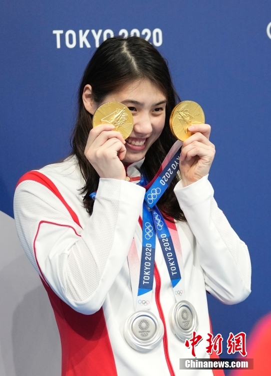 當(dāng)?shù)貢r(shí)間8月1日,東京奧運(yùn)會(huì)游泳比賽全部結(jié)束,張雨霏在游泳館展示自己的四塊獎(jiǎng)牌,拍照留念。本屆奧運(yùn)會(huì),張雨霏游了12槍共收獲了2金2銀,是當(dāng)之無(wú)愧的“勞!。中新社記者 杜洋 攝