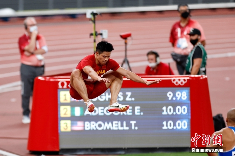 8月1日,在東京奧運會田徑男子百米半決賽中,中國選手蘇炳添以9.83秒的成績獲得小組第一順利晉級決賽,并打破亞洲紀(jì)錄,他也成為了首位闖進(jìn)奧運男子百米決賽的中國人。圖為蘇炳添在賽前熱身。 中新社記者 富田 攝
