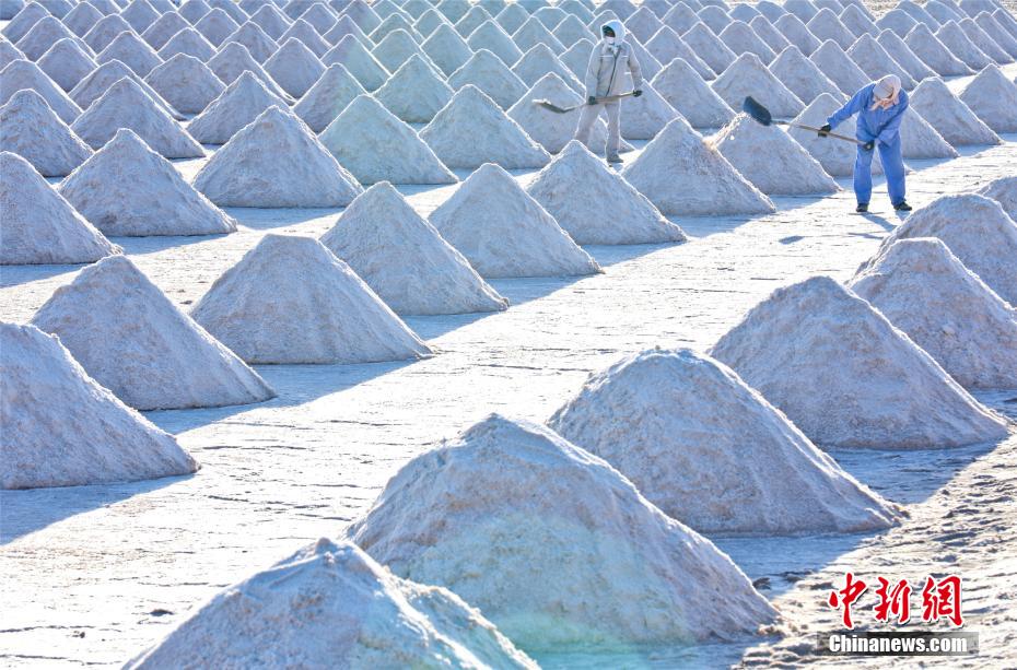 眼下又進(jìn)入原鹽開(kāi)鏟忙碌時(shí)節(jié),甘肅張掖市高臺(tái)縣一座座的鹽坨遠(yuǎn)遠(yuǎn)望去像一座座白色小山。人們將鹽池中已曬好的原鹽鏟起并拉運(yùn)集中,到處是一派繁忙的景象。高臺(tái)縣自漢代就盛產(chǎn)湖鹽,據(jù)今已有兩千多年的歷史。原料基地的鹽湖總面積75平方公里,總儲(chǔ)鹽量6500萬(wàn)噸,是國(guó)內(nèi)有名的湖鹽鹽倉(cāng)。史靜靜 攝