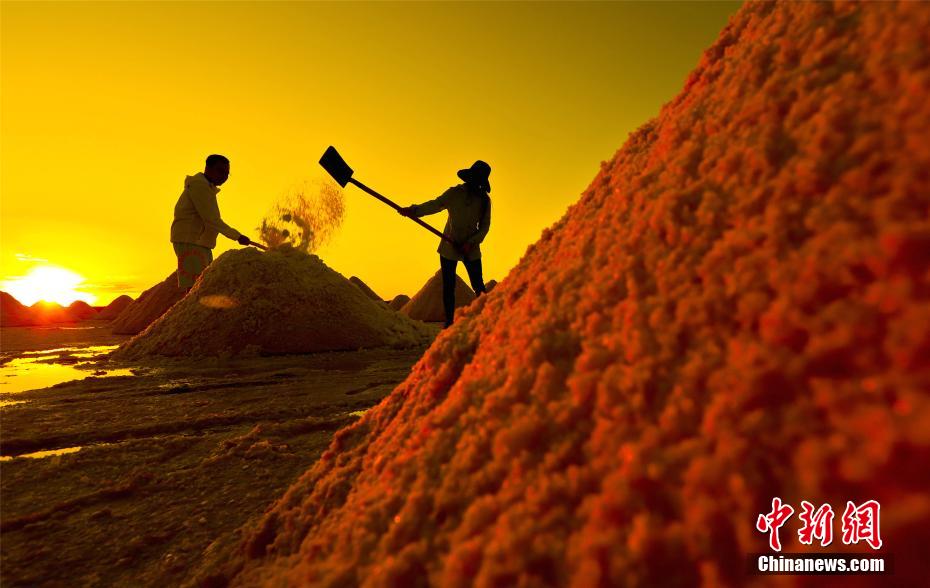 眼下又進(jìn)入原鹽開鏟忙碌時節(jié),甘肅張掖市高臺縣一座座的鹽坨遠(yuǎn)遠(yuǎn)望去像一座座白色小山。人們將鹽池中已曬好的原鹽鏟起并拉運(yùn)集中,到處是一派繁忙的景象。高臺縣自漢代就盛產(chǎn)湖鹽,據(jù)今已有兩千多年的歷史。原料基地的鹽湖總面積75平方公里,總儲鹽量6500萬噸,是國內(nèi)有名的湖鹽鹽倉。史靜靜 攝