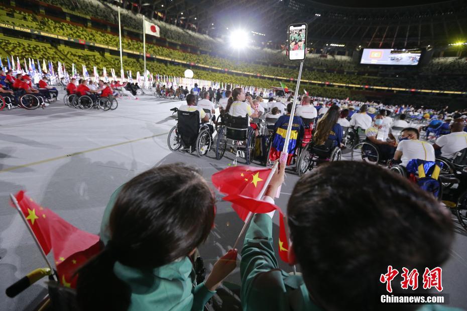 8月24日,日本東京,2020東京殘奧會(huì)開幕式在東京新國立競(jìng)技場(chǎng)舉行。圖為中國代表團(tuán)亮相開幕式。陳曦 攝