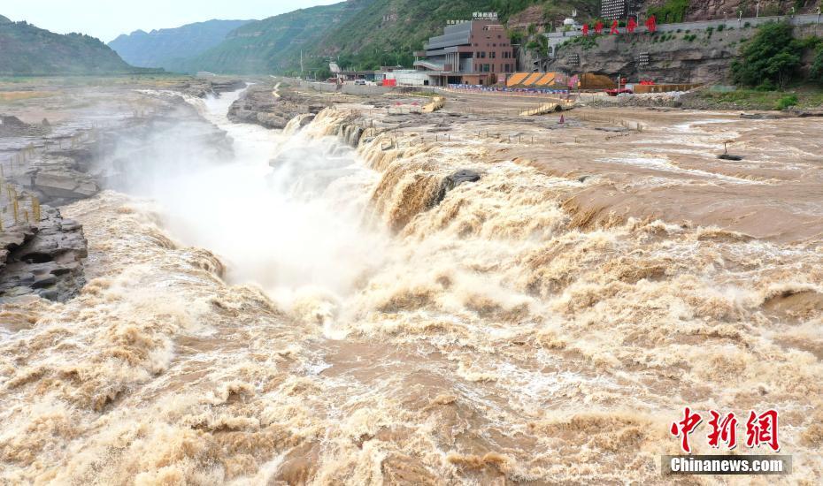 8月23日,在山西吉縣拍攝的奔騰咆哮的黃河壺口瀑布(無(wú)人機(jī)照片)。近日,受上游降雨增多影響,黃河干流晉陜峽谷水量增大,壺口瀑布再現(xiàn)壯美瀑布群景觀,濁浪翻滾,氣勢(shì)磅礴。中新社發(fā) 呂桂明 攝 圖片來(lái)源:cnsphoto