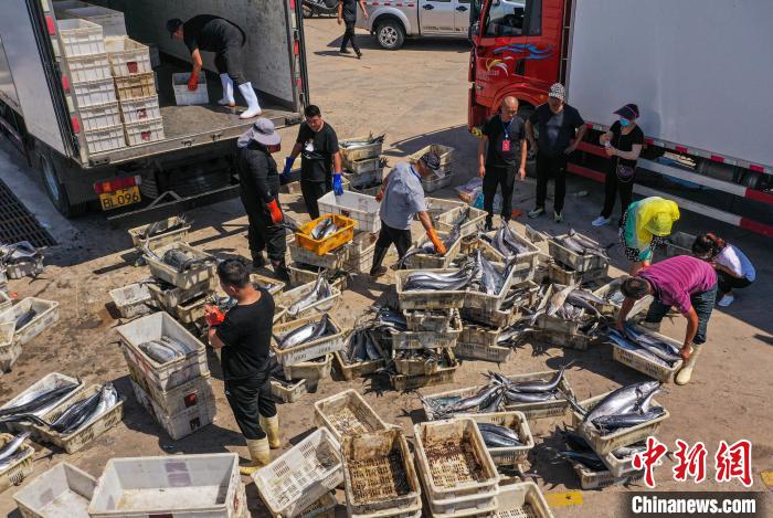 海鮮商販和民眾前來采購新鮮上岸的海鮮。 李信君 攝