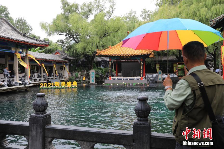 9月6日,山東濟(jì)南,游客雨中持傘觀泉。連續(xù)三日綿密的秋雨使?jié)先骸帮栵嫛备柿兀?2名泉全部噴涌。趵突泉實(shí)現(xiàn)自2003年9月6日復(fù)涌至今的“18年連噴”,濟(jì)南72名泉水位最高的月牙泉重現(xiàn)“月牙飛瀑”奇觀。 中新社記者 李欣 攝