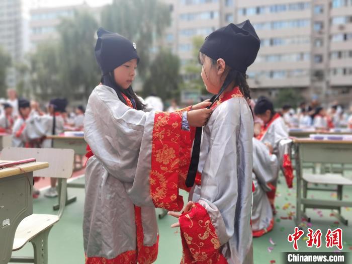 9月6日,蘭州市七里河小學(xué)教育集團(tuán)舉行新生入學(xué)“開筆禮”儀式。一年級(jí)新生身穿漢服,通過“端正衣冠”“感恩先賢”“朱砂啟智”等活動(dòng),體驗(yàn)傳統(tǒng)“開筆禮”儀式。學(xué)校希望通過舉行“開筆禮”儀式,弘揚(yáng)傳統(tǒng)文化,增強(qiáng)學(xué)生的學(xué)習(xí)興趣,培養(yǎng)孩子尊師重道、尊重長(zhǎng)輩的品質(zhì),塑造崇文尚德的良好品格,幫助孩子們從小樹立正確的人生觀、世界觀、價(jià)值觀。