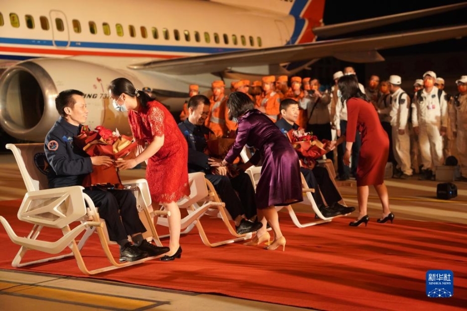 9月17日晚,航天員家屬在獻(xiàn)花。據(jù)中國載人航天工程辦公室消息,圓滿完成神舟十二號載人飛行任務(wù)的航天員聶海勝、劉伯明、湯洪波,于2021年9月17日乘坐任務(wù)飛機(jī)平安抵達(dá)北京。據(jù)介紹,3名航天員抵京后將進(jìn)入醫(yī)學(xué)隔離期,進(jìn)行全面的醫(yī)學(xué)檢查和健康評估,并安排休養(yǎng)。新華社發(fā) 郭中正 攝