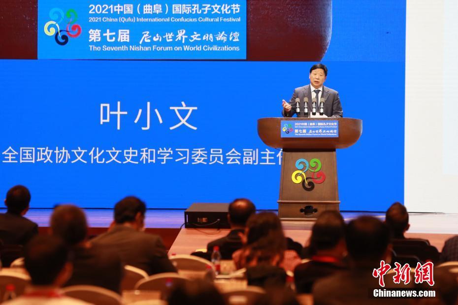 9月27日,“2021中國(曲阜)國際孔子文化節(jié) 第七屆尼山世界文明論壇”在孔子誕生地曲阜尼山舉行。圖為全國政協(xié)文化文史和學(xué)習(xí)委員會副主任葉小文發(fā)表主旨演講。 中新社記者 梁犇 攝