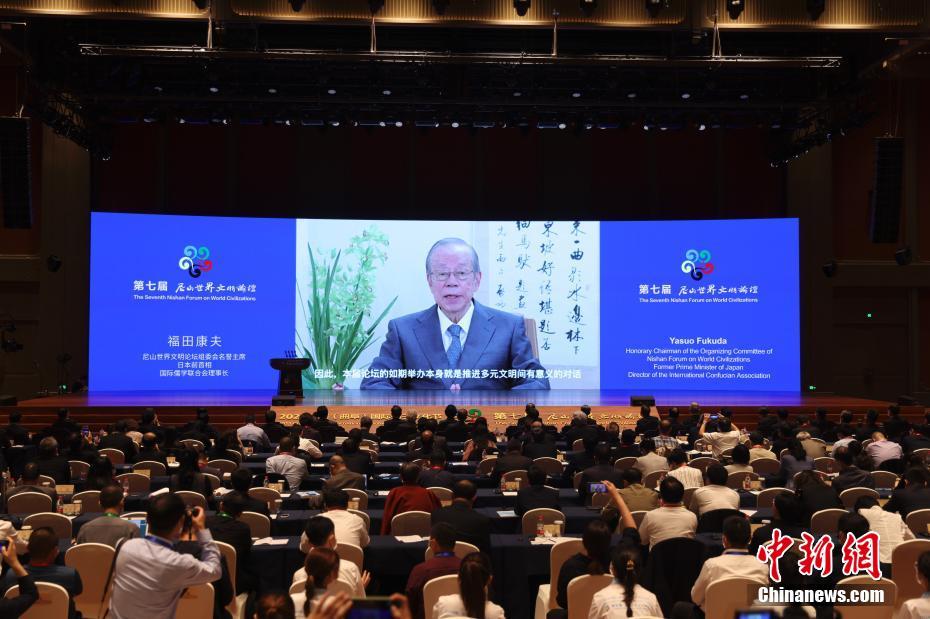 9月27日,“2021中國(曲阜)國際孔子文化節(jié) 第七屆尼山世界文明論壇”在孔子誕生地曲阜尼山舉行!2021中國(曲阜)國際孔子文化節(jié) 第七屆尼山世界文明論壇”由教育部、文化和旅游部、國務(wù)院僑務(wù)辦公室、中國社會科學院、中國人民對外友好協(xié)會、國際儒學聯(lián)合會、山東省人民政府共同主辦。今年國際孔子文化節(jié)的主題為“紀念孔子誕辰2572年”,第七屆尼山世界文明論壇的主題為“文明對話與全球合作”。圖為日本前首相福田康夫通過視頻致辭。 中新社記者 盛佳鵬 攝