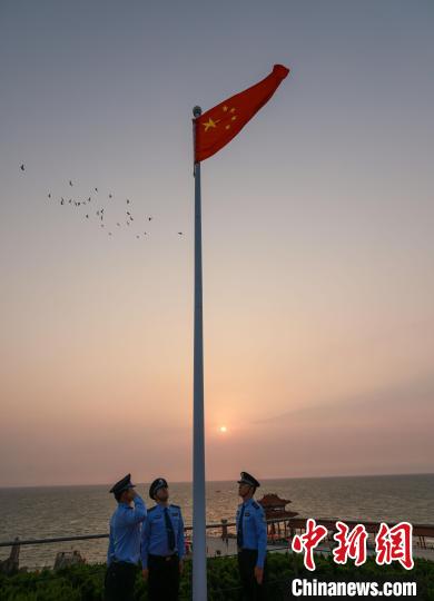 作為駐守在山東半島最東端的國門衛(wèi)士,邊檢民警們以這樣的形式為祖國獻禮!±钚啪 攝