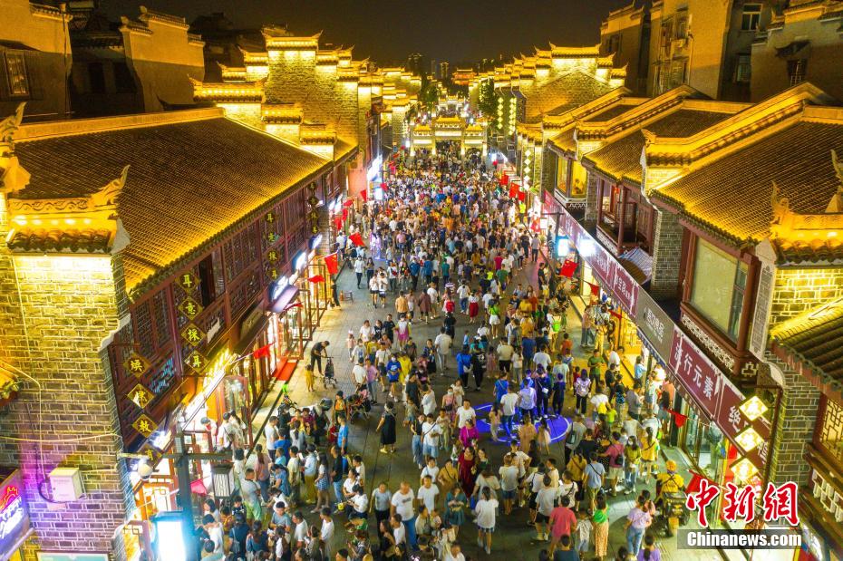 10月3日晚,湖北襄陽古城北街燈光璀璨,景色迷人,游客如織。國慶假期前三天,襄陽天氣晴熱,涼爽的夜晚成為游客游覽古城的不二選擇。襄陽北街坐落在襄城十字街,北連古城墻,南接昭明臺,主要以鄂西北地區(qū)仿明清時期的建筑群為主,是襄陽作為歷史文化名城的重要標(biāo)志之一。 楊東 攝