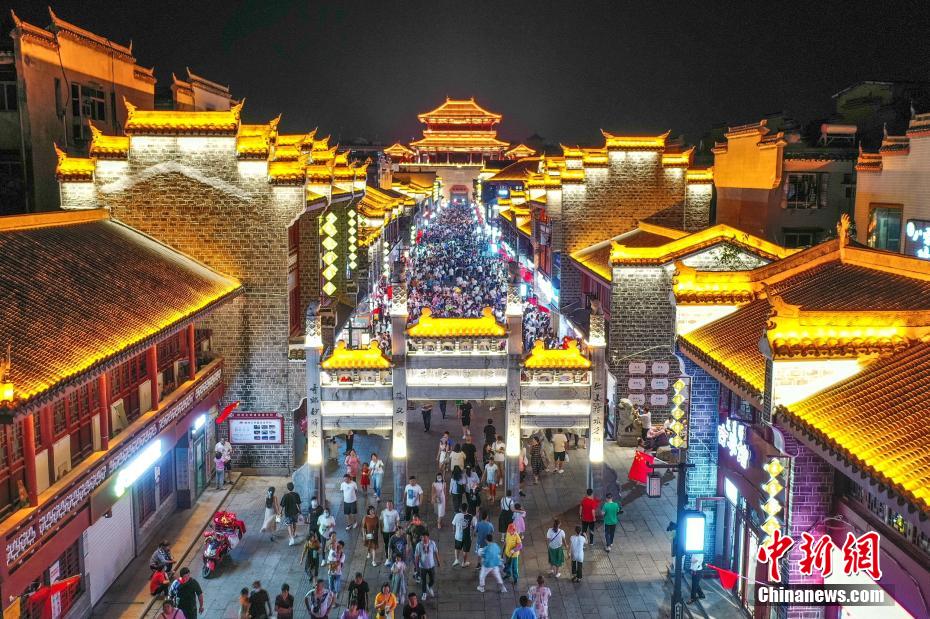 10月3日晚,襄陽古城北街燈光璀璨,游客如織。 楊東 攝