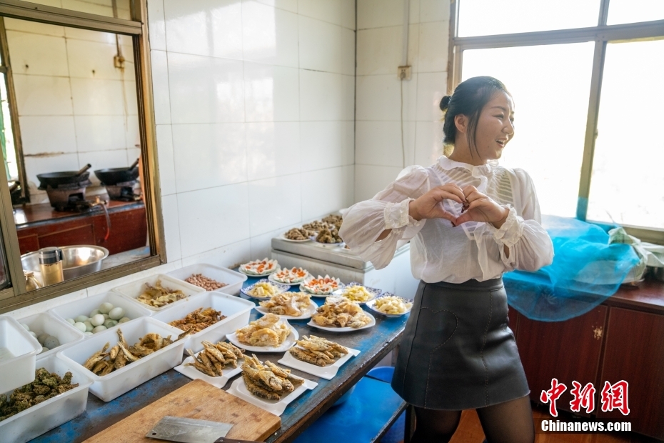 陳恒花在自家經(jīng)營(yíng)的飯店后廚錄制短視頻。史春陽(yáng) 攝