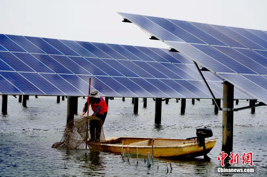 “漁”“鹽”是濱海鎮(zhèn)的優(yōu)勢產(chǎn)業(yè)。濱海鎮(zhèn)不斷優(yōu)化土地資源配置,為拓寬增收致富渠道,拉動鄉(xiāng)村振興發(fā)展,提高土地畝均效益,立體開發(fā)了北部沿海5.3萬畝水面。整合“風、光、漁、溴、鹽”資源,大力探索光伏發(fā)電、風力發(fā)電、水產(chǎn)養(yǎng)殖、海水提溴、海水曬鹽的資源利用,形成了“上風中光下漁底鹽”的“綠色產(chǎn)業(yè)鏈”。已初具規(guī)模的光伏發(fā)電,水中養(yǎng)蝦、海水曬鹽的立體循環(huán)、碳中和綠色經(jīng)濟發(fā)展模式。趙樹宴 攝