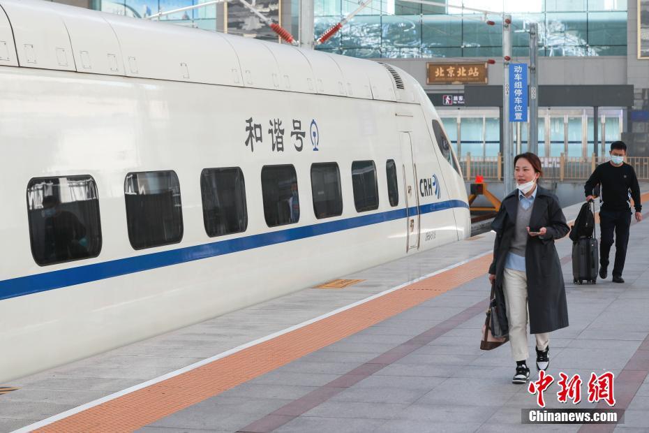 10月11日,旅客在北京北站乘坐D6723次列車。中新社記者 賈天勇 攝