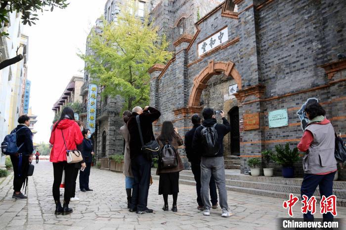 采風(fēng)團(tuán)成員游覽臺(tái)兒莊古城!∩骋(jiàn)龍 攝