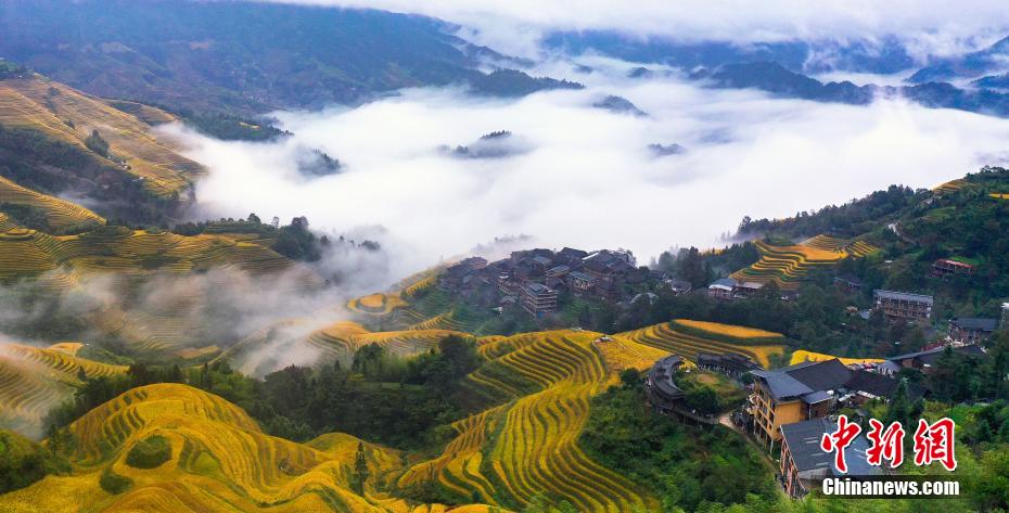 10月20日,一場秋雨過后,廣西桂林市龍勝各族自治縣龍脊梯田云霧繚繞,層層疊疊的梯田、錯(cuò)落有致的吊腳樓在云霧中若隱若現(xiàn),宛如一幅水墨畫,美不勝收。 潘志祥? 攝