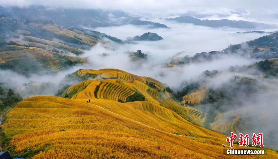 10月20日拍攝的廣西桂林市龍勝各族自治縣龍脊梯田云海景觀。 潘志祥 攝