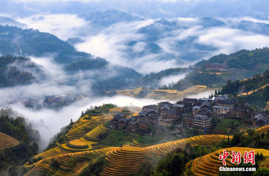 10月20日拍攝的廣西桂林市龍勝各族自治縣龍脊梯田云海景觀。 潘志祥 攝