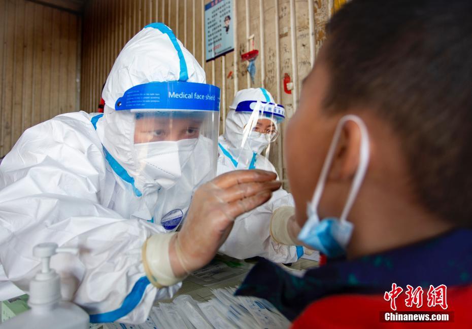 10月21日上午,蘭州市,一名學(xué)生正在做核酸檢測(cè)。蘭州市教育局發(fā)布《關(guān)于全市中小學(xué)校緊急停課的通知》稱,為防止疫情在校園內(nèi)傳播,決定自21日起停止全市中小學(xué)校(幼兒園)、校外培訓(xùn)機(jī)構(gòu)線下教學(xué)培訓(xùn)活動(dòng)。學(xué)校師生按統(tǒng)一安排,于21日至22日完成全員核酸檢測(cè)。 中新社記者 高展 攝