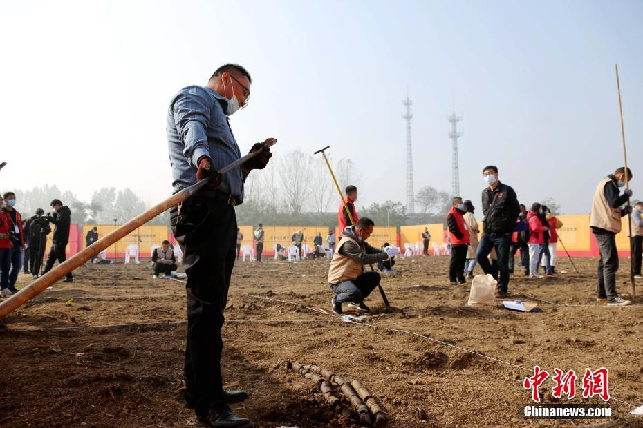 10月22日,參賽選手在考古勘探項目競賽現(xiàn)場。當日,2021年全國文物職業(yè)技能競賽在山東曲阜開幕,本次競賽共有古建筑木作、古建筑瓦作、古建筑彩畫作、瓷器文物修復、書畫文物修復、考古勘探6個項目,150余名選手參賽。 中新社記者 沙見龍 攝