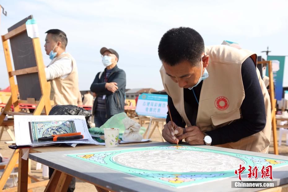 10月22日,參賽選手參加古建筑彩畫(huà)作實(shí)操比賽。當(dāng)日,2021年全國(guó)文物職業(yè)技能競(jìng)賽在山東曲阜開(kāi)幕,本次競(jìng)賽共有古建筑木作、古建筑瓦作、古建筑彩畫(huà)作、瓷器文物修復(fù)、書(shū)畫(huà)文物修復(fù)、考古勘探6個(gè)項(xiàng)目,150余名選手參賽。 中新社記者 沙見(jiàn)龍 攝