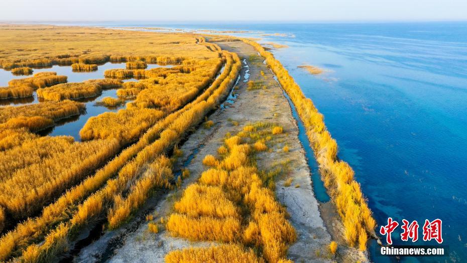 2021年10月24日,無人機(jī)航拍新疆巴音郭楞蒙古自治州博湖縣博斯騰湖濕地秋景。金秋時(shí)節(jié),位于新疆維吾爾自治區(qū)巴音郭楞蒙古自治州博湖縣境內(nèi)的博斯騰湖碧波蕩漾。博斯騰湖是中國(guó)最大的內(nèi)陸淡水吞吐湖,有豐富的漁業(yè)資源,環(huán)湖孕育著60萬畝蘆葦,是全國(guó)四大葦區(qū)之一。 中新社發(fā) 年磊 攝 圖片來源:cnsphoto