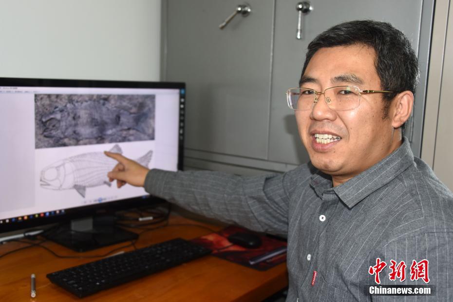 10月26日,中國科學院古脊椎動物與古人類研究所消息,該所徐光輝研究團隊對采自云南羅平三疊紀海相地層3件2.44億年前古魚化石的最新研究發(fā)現(xiàn),它們是目前所知世界上最古老的肋鱗裂齒魚類,將肋鱗裂齒魚類最早發(fā)現(xiàn)紀錄提前約200萬年。這也是該魚類在亞洲的首次發(fā)現(xiàn),因此命名為亞洲肋鱗裂齒魚。圖為徐光輝研究員介紹亞洲肋鱗裂齒魚化石研究最新成果。 中新社記者 孫自法 攝