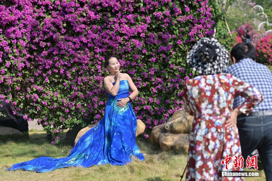 廣西南寧三角梅盛放 游人暢游彩色花海(2)