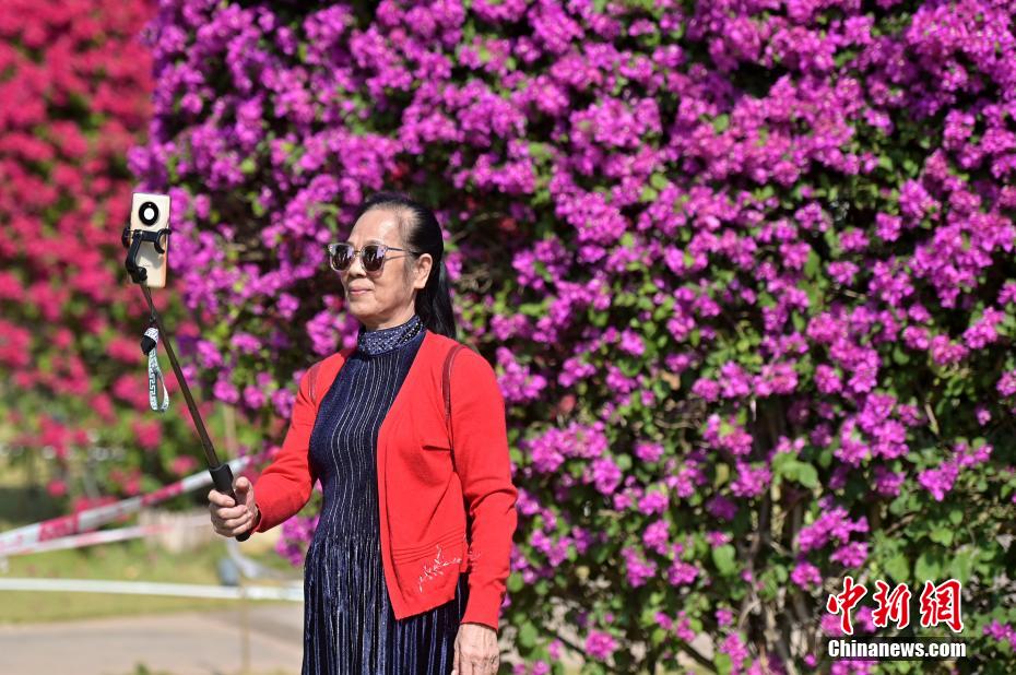廣西南寧三角梅盛放 游人暢游彩色花海(3)