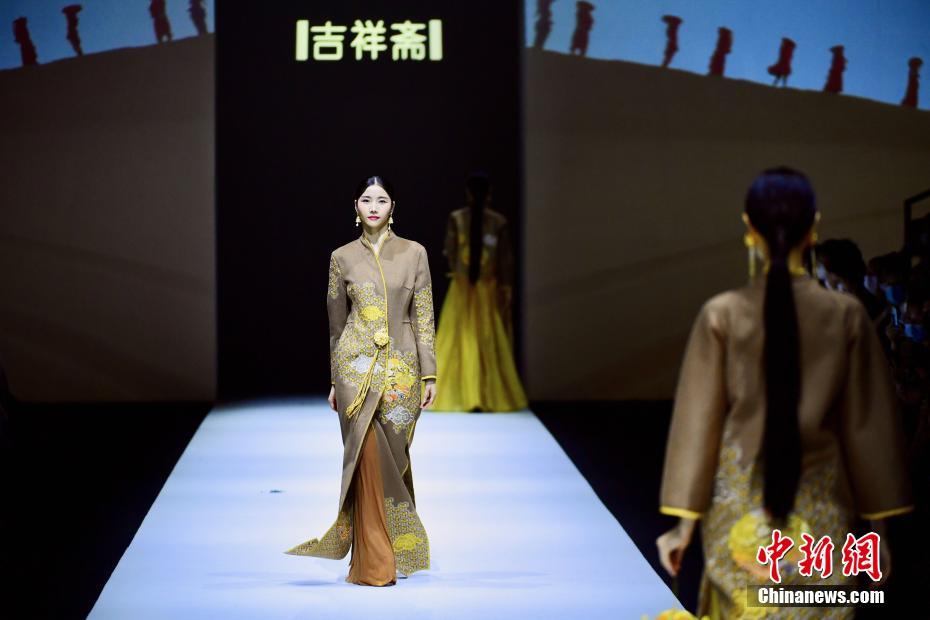 10月30日,深圳,在深圳時裝周2022春夏系列品牌吉祥齋發(fā)布會上,模特演繹了中國元素的古典韻味,呈現(xiàn)了一場時尚盛宴。 中新社記者 陳文 攝