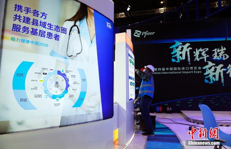 11月1日,第四屆進博會即將開幕,工作人員加緊布展。本屆進博會將有來自127個國家和地區(qū)的近3000家參展商亮相,國別、企業(yè)數(shù)均超過上屆! 中新社記者 湯彥俊 攝