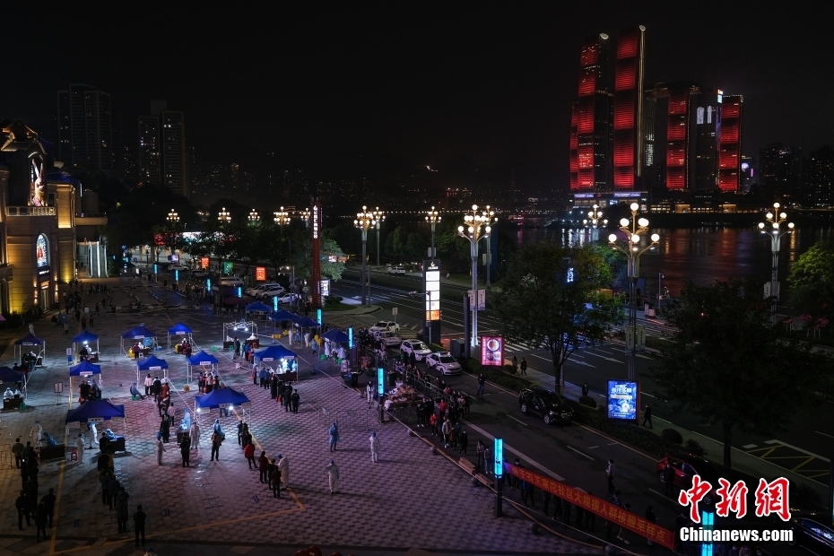 11月2日晚,重慶市南岸區(qū)彈子石街道王家沱社區(qū)核酸采樣點,居民有序在臨時搭建的核酸檢測點做檢測。中新社記者 何蓬磊 攝