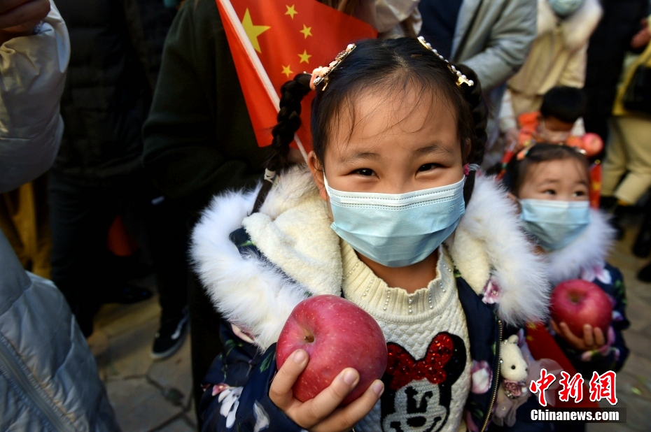 11月9日,北京市豐臺區(qū)新村街道怡;▓@社區(qū)恒豐園11號樓在封控21天后正式解封。圖為居民收到代表“平安”的蘋果。中新網(wǎng)記者 李駿 攝