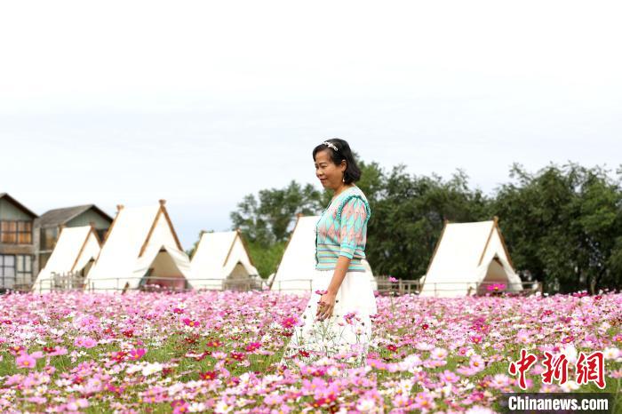 廣西柳州鄉(xiāng)村格;ň`放 游客花田里打卡(5)
