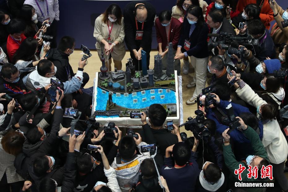 11月8日是第22個中國記者節(jié),在位于上海的第四屆中國國際進(jìn)口博覽會新聞中心,工作人員為媒體記者準(zhǔn)備了蛋糕,媒體記者代表切蛋糕。 中新社記者 蔣啟明 攝