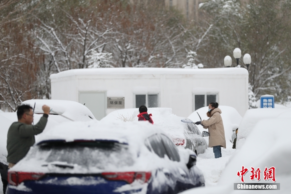 11月9日,遼寧沈陽(yáng),市民清理汽車上的積雪。 中新社記者 于海洋 攝