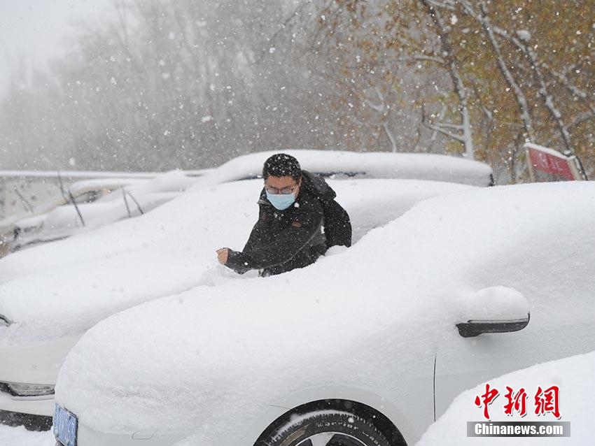11月9日,吉林省中西部多地繼續(xù)中雪、大雪、暴雪、大暴雪天氣,7個市縣遭遇特大暴雪。圖為車主正在為車輛清理積雪。張瑤 攝
