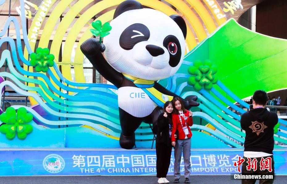 11月10日,在國(guó)家會(huì)展中心(上海)舉行的第四屆中國(guó)國(guó)際進(jìn)口博覽會(huì)閉幕。受疫情等因素影響,本屆進(jìn)博會(huì)按一年計(jì)意向成交金額707.2億美元,比上屆略降2.6%。圖為志愿者與進(jìn)博會(huì)吉祥物合影留念。 中新社記者 湯彥俊 攝