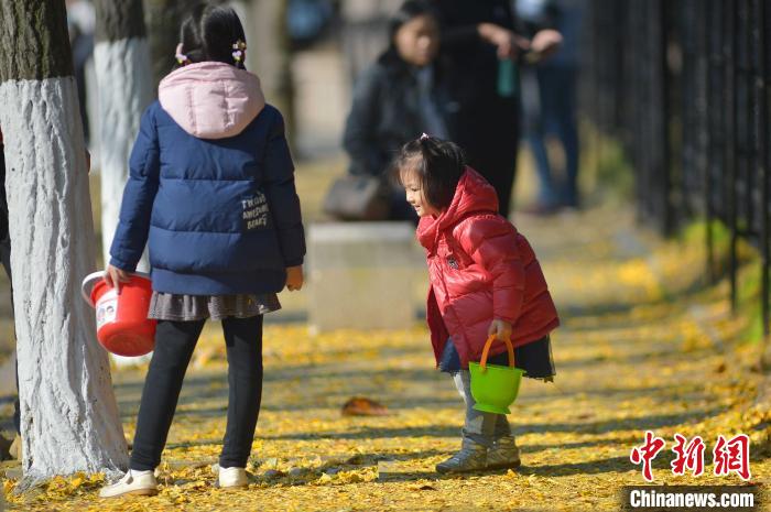 一名小朋友在青島八大關景區(qū)銀杏樹下拍照!⊥鹾I 攝
