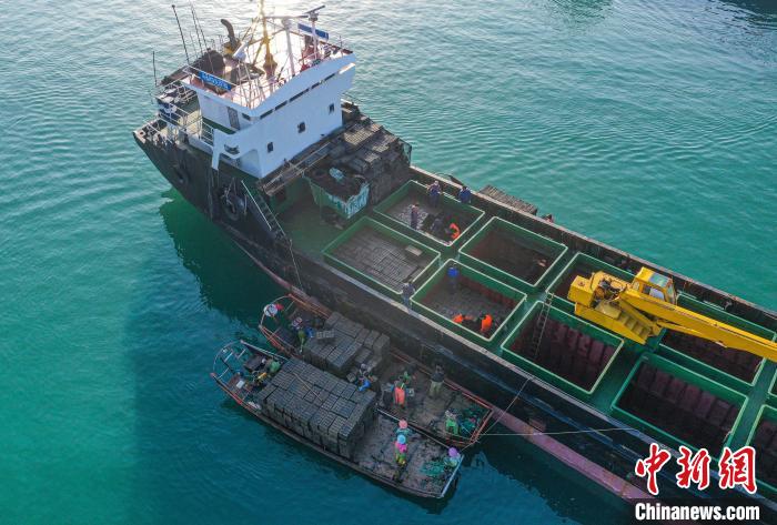 為應(yīng)對冬季低溫養(yǎng)殖環(huán)境,山東榮成和福建莆田合作開展鮑魚南北轉(zhuǎn)場、冬夏對調(diào)養(yǎng)殖合作!±钚啪 攝