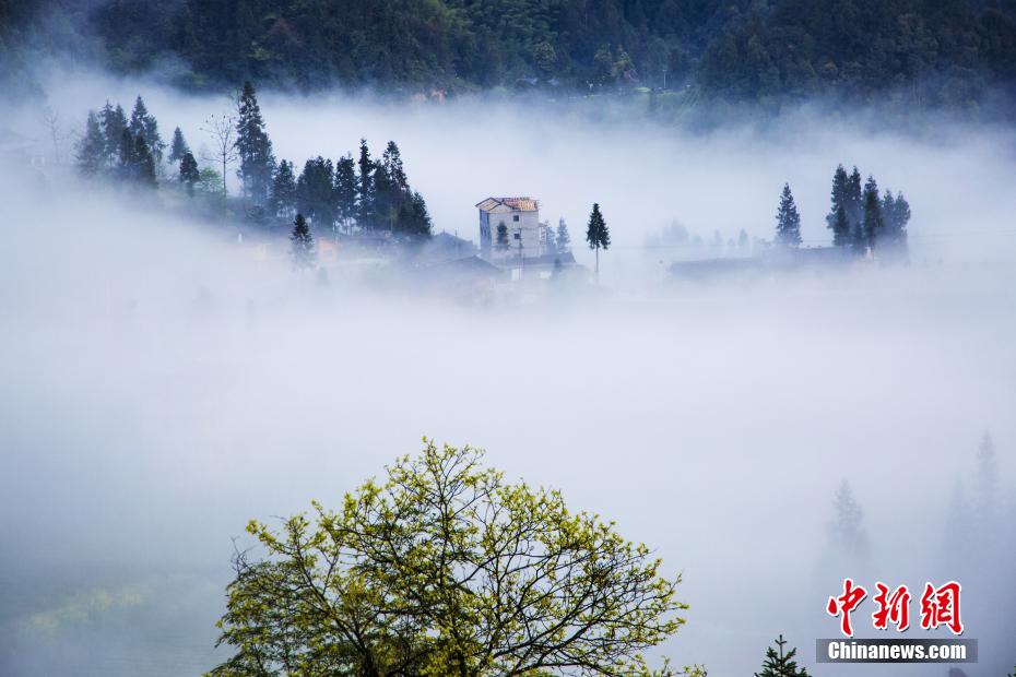 村落在云海中若隱若現(xiàn)如畫卷。陳小林 攝
