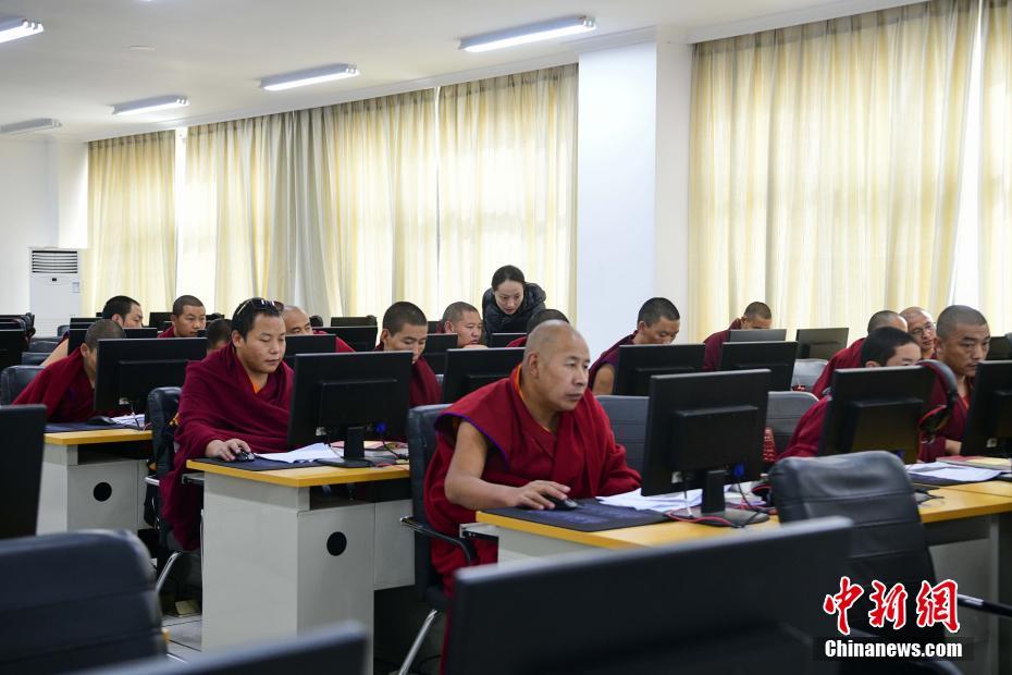 11月19日,西藏佛學(xué)院成立10周年慶;顒(dòng)在西藏自治區(qū)拉薩市曲水縣聶當(dāng)鄉(xiāng)西藏佛學(xué)院隆重舉行。西藏佛學(xué)院辦學(xué)10年來(lái),已為西藏自治區(qū)各寺廟培養(yǎng)畢業(yè)學(xué)員1335人,培訓(xùn)僧尼2640人。圖為西藏佛學(xué)院學(xué)員正在上計(jì)算機(jī)課程。 中新社記者 貢嘎來(lái)松 攝