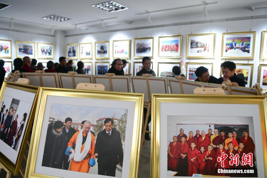 11月19日,西藏佛學院成立10周年慶;顒釉谖鞑刈灾螀^(qū)拉薩市曲水縣聶當鄉(xiāng)西藏佛學院隆重舉行。圖為教職工代表參觀西藏佛學院成立10周年攝影展。 中新社記者 貢嘎來松 攝