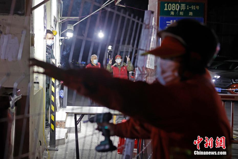 香樟苑小區(qū)門(mén)口值守的志愿者等待結(jié)束閉環(huán)管理的時(shí)刻。 殷立勤 攝