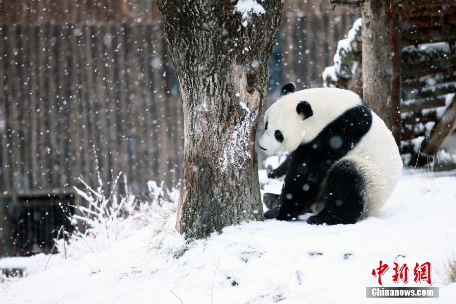 12月11日,大熊貓國家公園四川九寨溝園區(qū)內,來自中國大熊貓保護研究中心的“海歸”大熊貓“小禮物”再次迎來冬日大雪天氣,它在雪地中采食、嬉戲,萌態(tài)十足。中新社發(fā) 何勝山 攝 圖片來源:CNSPHOTO
