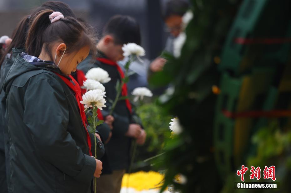 12月12日,在第八個國家公祭日來臨之際,南京小學生紛紛來到侵華日軍南京大屠殺遇難同胞叢葬地,敬獻鮮花,悼念遇難同胞。12月13日是南京大屠殺死難者國家公祭日。圖為小學生在侵華日軍南京大屠殺遇難同胞正覺寺叢葬地悼念遇難同胞。 中新社記者 泱波 攝