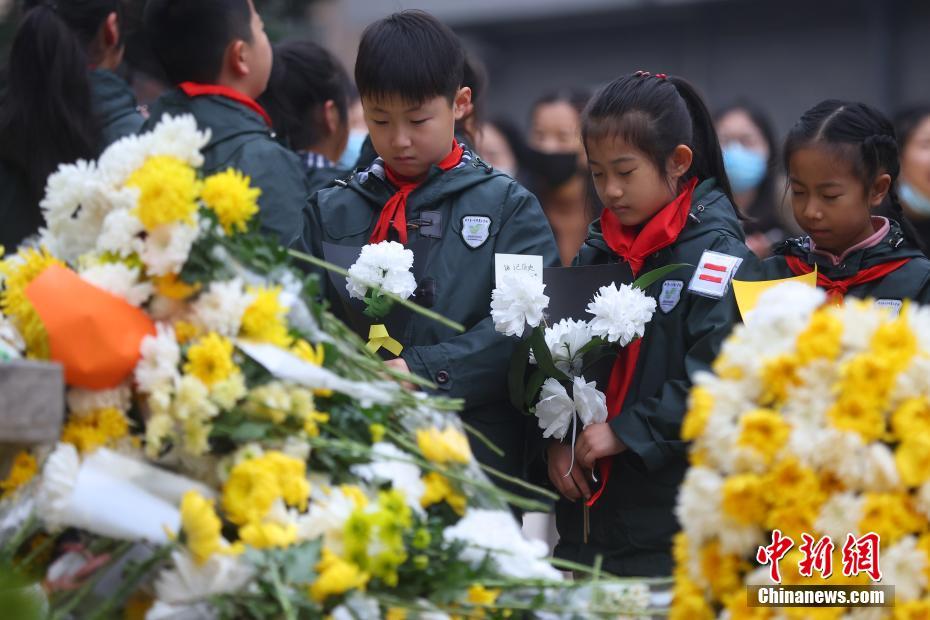 圖為小學(xué)生在侵華日軍南京大屠殺遇難同胞正覺寺叢葬地悼念遇難同胞。 中新社記者 泱波 攝