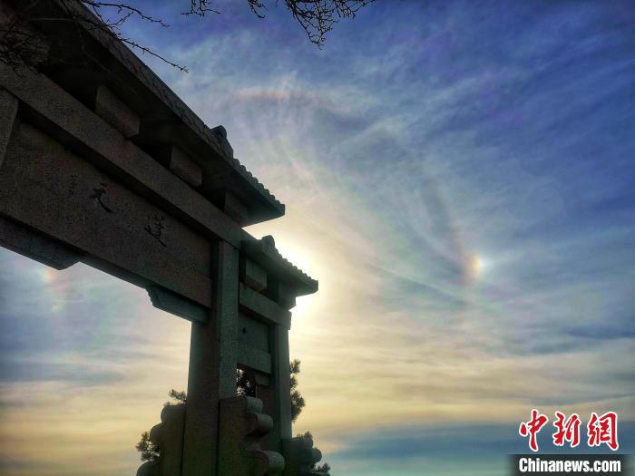 12月16日,泰山岱頂出現(xiàn)“雙側(cè)幻日”奇觀!⒆魝} 攝
