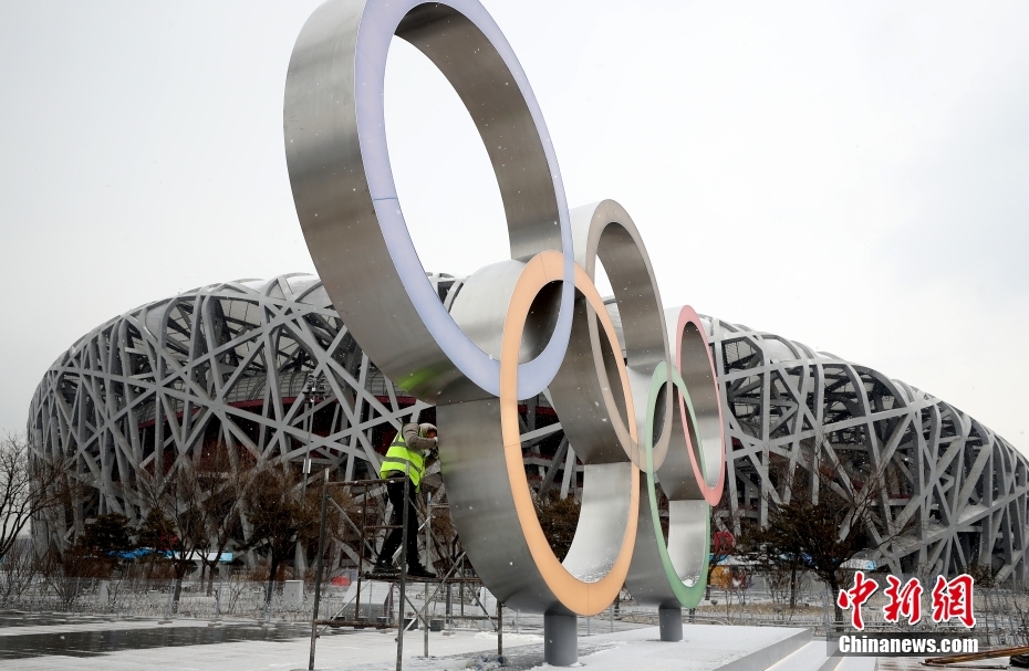 1月20日,北京冬奧會奧林匹克公園公共區(qū)內(nèi)的臨時設(shè)施建設(shè)已全部搭建完成,總面積約41000平方米,包括賽事服務(wù)、餐飲服務(wù)區(qū)、志愿者之家、醫(yī)療站等用房。圖為奧林匹克公園公共區(qū)大型藝術(shù)景觀“五環(huán)”,“五環(huán)”將在日夜呈現(xiàn)不同景觀效果。 中新社記者 張宇 攝