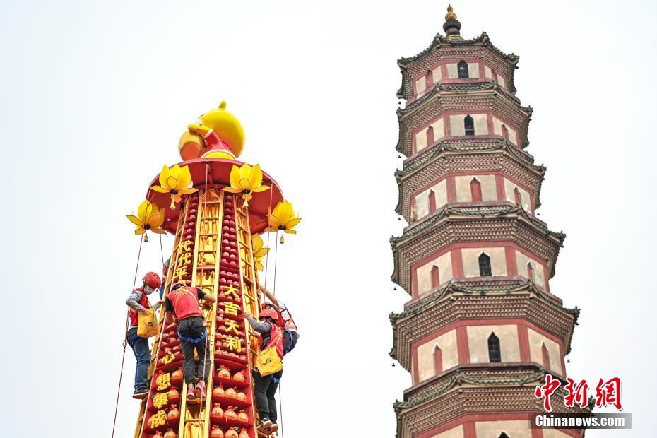 1月26日,廣東省廣州市,市民爬上“金山”摘水果。當(dāng)日,廣州蓮花山景區(qū)舉辦新春民俗文化活動,高16米的“金山”上堆砌著蘋果(代代平安)、柚子(越碌越有)、甘蔗(掂過碌蔗)等具有吉祥寓意的水果,吸引游客“爬金山”討好兆頭。中新社記者 陳驥旻 攝
